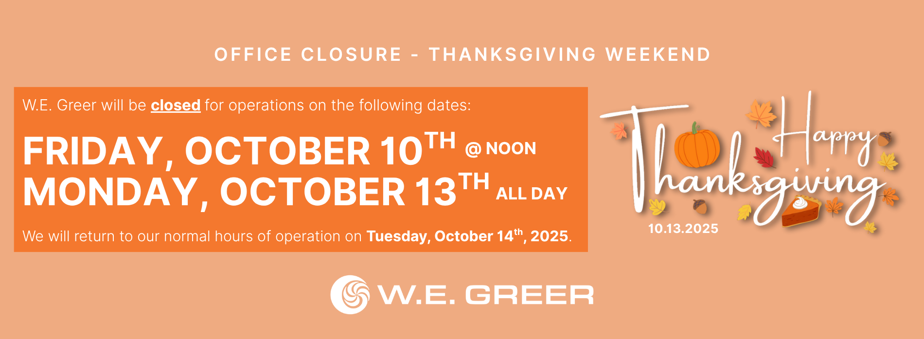 A W.E. Greer customer is the most valued guest at our premises. They are not dependent on us – we are dependent on them. They are not outsiders to our business – they are an integral part of it. We are not doing them a favor by serving them – they are doing us a favor by granting us the opportunity to serve them.